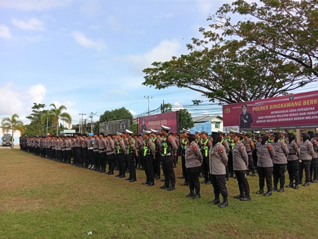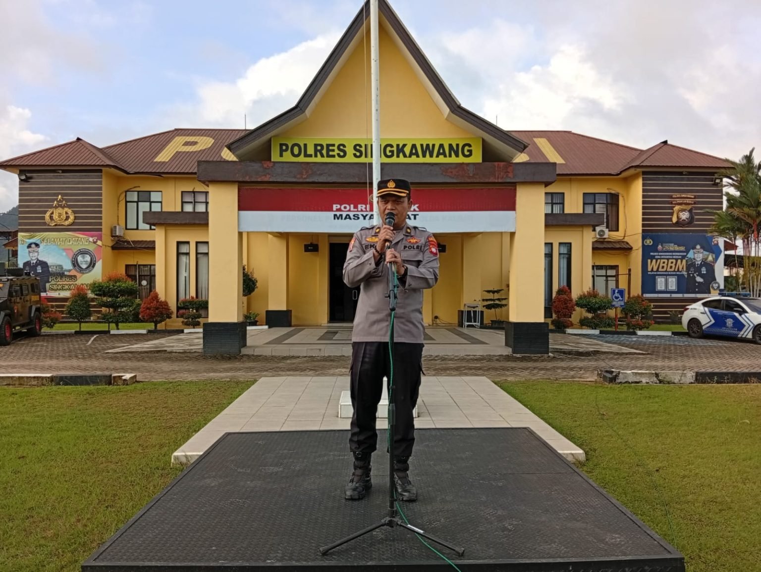 Pelaksanaan apel dipimpin Kapolres Singkawang yang diwakili Kabag Ops Polres Singkawang, KOMPOL Eko Andi Sutejo, S.H., M.H.