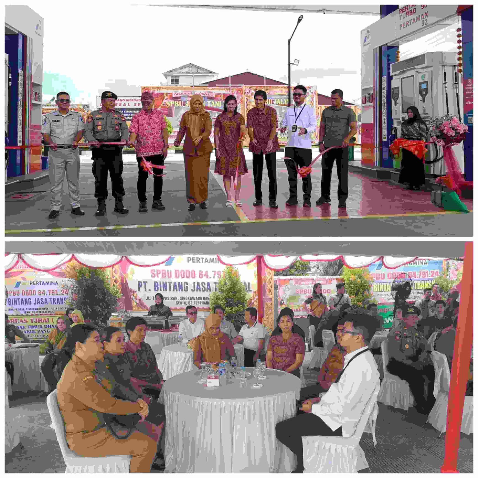 Kegiatan peresmian SPBU DODO 64.791.24 tersebut dihadiri oleh sejumlah pejabat dan perwakilan instansi, di antaranya Sekretaris Daerah Kota Singkawang Ir. Dwi Yanti, S.T., M.T., M.H., Pasi Intel Kodim 1202/Singkawang Kapten Inf. Taufik Wiramansyah, Ps. Kasat Samapta Polres Singkawang IPTU Lantar, Kepala Cabang Jasa Raharja Singkawang Febri Irawan, serta perwakilan perangkat daerah seperti Dinas Perindustrian dan Perdagangan, Dinas PUPR, Dinas Perhubungan, dan Dinas Penanaman Modal dan Tenaga Kerja Kota Singkawang. Turut hadir pula Anggota DPRD Kota Singkawang dari Partai Nasdem Sumberanto Tjitra, S.H., M.H., Ketua DAD Kota Singkawang Drs. Stepanus, serta Direktur SPBU DODO Joni selaku pihak pengelola.