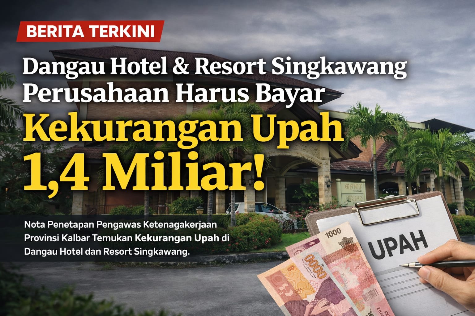 Singkawang, Kalbar – Hasil pemeriksaan dan pengujian pengawasan ketenagakerjaan terhadap PT Dangau Selaras (Dangau Hotel dan Resort) di Kota Singkawang periode 2011–2025 menemukan adanya pelanggaran norma pengupahan berupa kekurangan upah yang wajib dibayarkan oleh pihak perusahaan kepada pekerja.