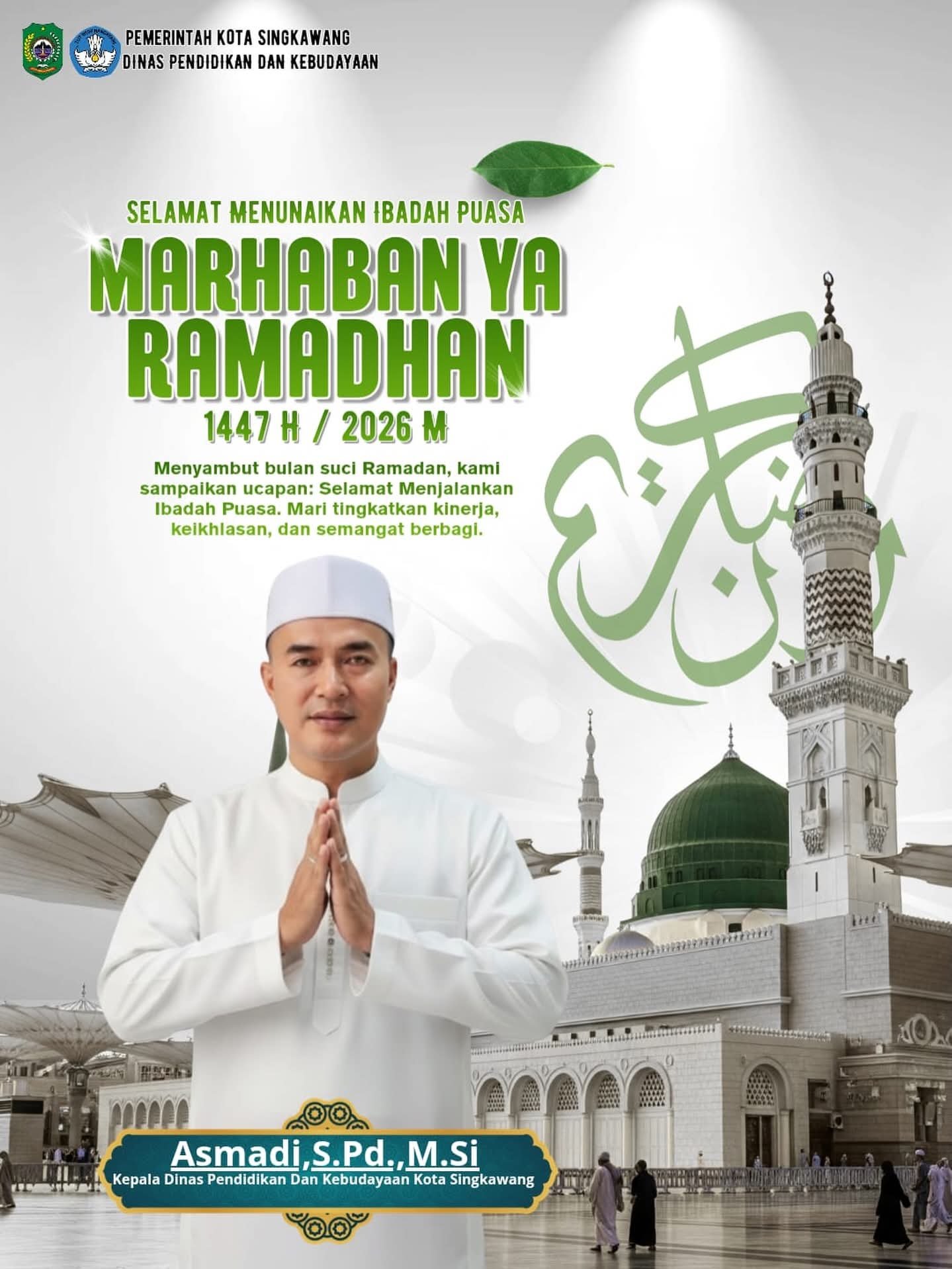 Singkawang Kalbar– Di bulan suci Ramadhan 1447 Hijriah, Kepala Dinas Pendidikan Dan Kebudayaan Singkawang Asmadi S.Pd, M. Si mengajak seluruh lapisan masyarakat untuk melaksanakan ibadah di bulan penuh berkah ini dengan penuh sukacita, kesabaran, dan iman.